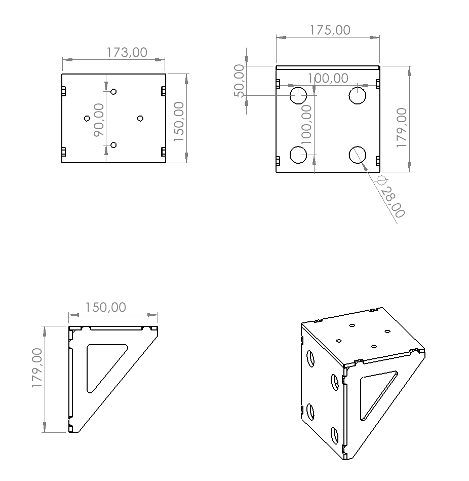 Angle mount suitable for our tapping machine MR-16B and welding tables with 28 mm holes and 100 mm spacing.