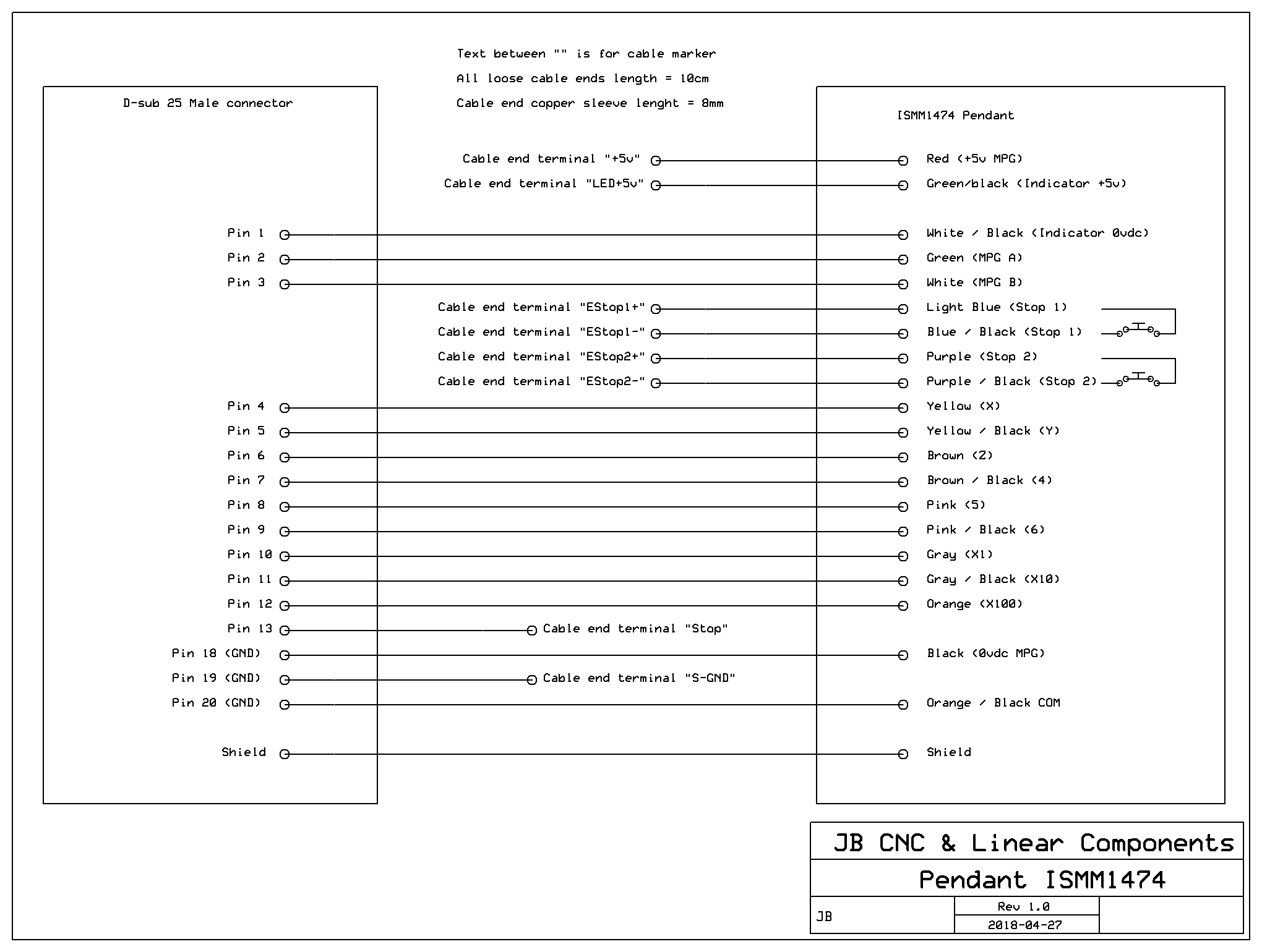 - Färdigkopplad D-sub 25 pol hane som tillsammans med Dsub-Ho-IDC kan kopplas direkt till tex UC300ETH eller Smoothstepper ESS (Obs endast till port med ingångar på pin 2-9 tex port 5 på UC300ETH)