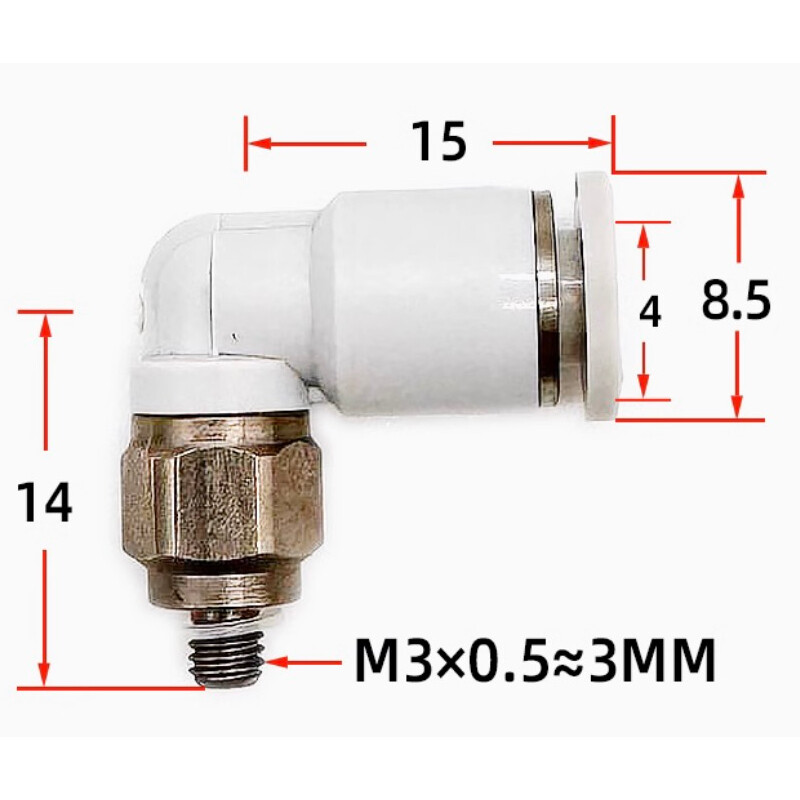Male elbow 4mm M3x0,5 SKU: PL4M3-M Stock Status: 14 pcs 10.70 kr VAT: 2.68 kr Quantity pcs Add To Cart Description Male elbow 12mm 1/4" Files Airtac Accessories PC 20250130.pdf