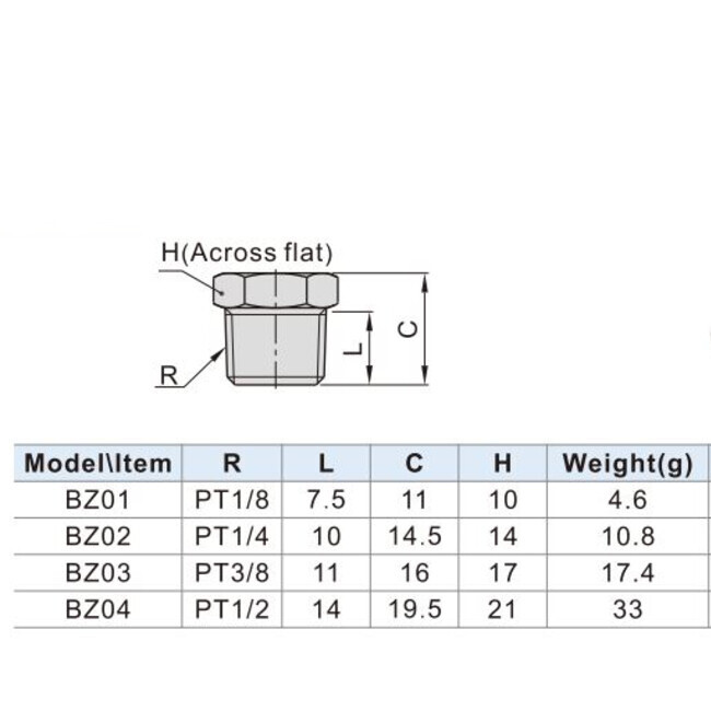 • Head cap plug 1/4"