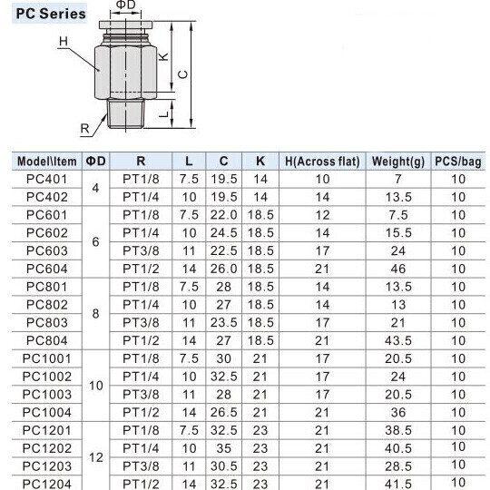 Male connector 12mm 1/4" SKU: PC1202 Stock Status: 10 pcs 18.40 kr VAT: 4.60 kr Quantity pcs Add To Cart Description Male connector 12mm 1/4" Files Airtac Accessories PC 20250130.pdf