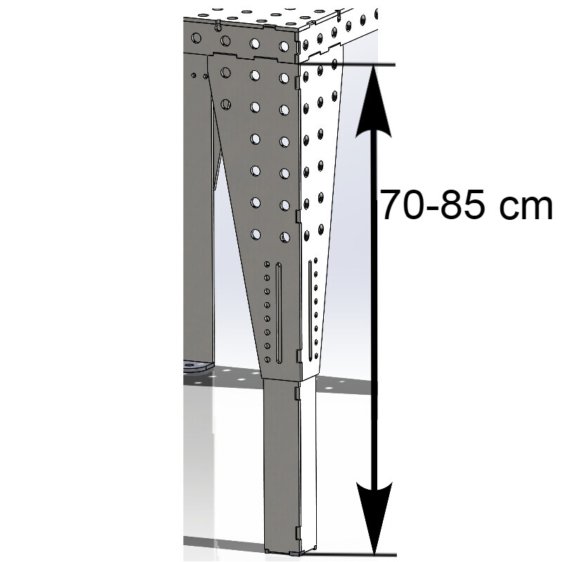 - Kund gängar själv 2st hål på varje ben med M8 gängtapp (16st M8 16mm skruvar behövs för att låsa benen, ingår ej)